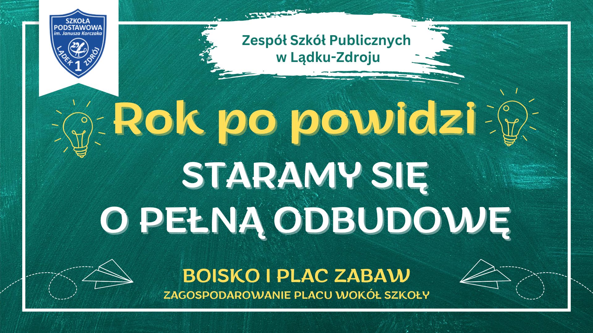 Rok temu nasza szkoła, mieszkańcy Lądka-Zdroju – my wszyscy – doświadczyliśmy wyjątkowo trudnych chwil. Powódź pozostawiła po sobie ogromne zniszczenia, które dotknęły wielu z nas. Dziś, po kilkunastu miesiącach, powoli