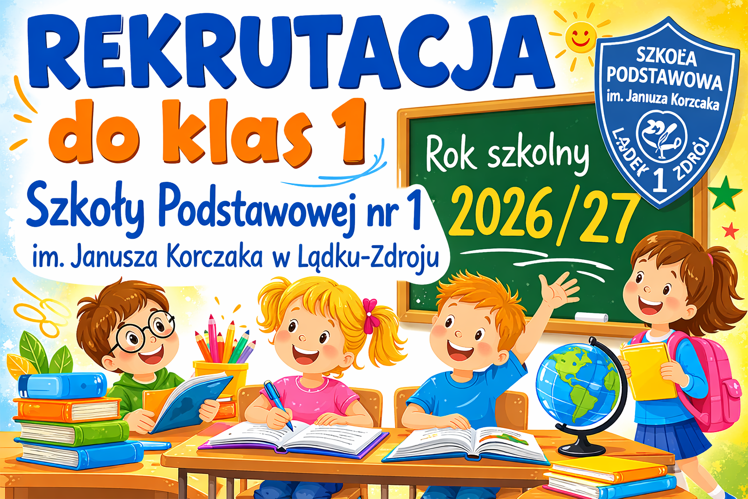 Zapraszamy do zapisu swoich dzieci do klasy I Szkoły Podstawowej nr 1 im. Janusza Korczaka w Lądku -Zdroju w roku szkolnym 2026/2027. Poniżej szczegółowy harmonogram oraz druki rekrutacyjne. Wniosek o