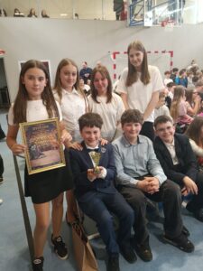 I miejsce i NAGRODA ZŁOTEJ PRZEPIÓRY dla klasy I b za wykonanie utworu „Dzień dobry”