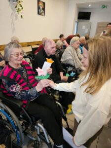 Występ spotkał się z ciepłym przyjęciem seniorów, a w sali panowała wzruszająca, pełna serdeczności atmosfera. Na zakończenie spotkania dzieci wręczyły mieszkańcom własnoręcznie wykonane kwiatki🌹, wywołując wiele uśmiechów i miłych emocji.